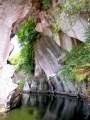 曹山、放生池,风光秀丽,山上竹木成林,四季常青。西侧一条长二十余米的石梁跨越水面,横贯南北,似如一只巨大的白象,伫立池中、一柱孤岩自山顶悬空而下,直插水底,称“象鼻吸水”,无论从哪个角度看,形象逼真,丰满大方。放生池深而幽奇,池深二十余,水质清澈。光洁石面,多处古代名人题刻、字迹朱碧兼之,清晰可见。池中残石,形态各异,如“青蛙登天”,五犬迎宾等,无不显现无穷的灵气和神韵、因而有“江南武陵源”之美称。