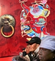 七、南门内小广场的 “百福墙”,在大型喷绘布用多种字体喷出福字,游客可以在上面书写对伟大祖国六十年华诞的祝福,以及新春佳节对亲朋好友的祈福、祝愿。