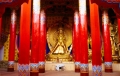 惠远寺经过三次重建,新建庙宇为宫殿式金瓦顶楼,配以金幢宝瓶,彩绘历代帝王及战将,各种唐卡画,活佛神像于檐檩之上;浮雕九龙九狮门枋,肥梁胖柱,铺陈富丽;庭院宽敞,布局严谨;楼堂庭廊,和谐得体。殿宇建筑豪华,具典型的地方特色,为康巴建筑艺术的精品。 (CCN传媒图片网 罗晓娜)